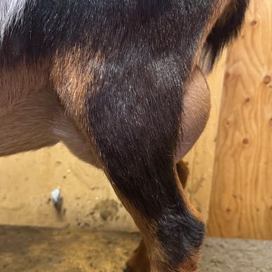 Leisure Time Nigerians had a visit from me and while I was there Fadie caught my eye. A stunning doe. So beautifully put together and friendly. When Kristine offered her to me as a 1 yr.old first freshener, I couldn't pass her up and now she is by far on of the top favorites on the farm. She is set to freshen for the 3rd time this Spring 2026, and we are excited to see what she brings to the table her maturity into a 3 year old. Being bred to Bowser this year will bring us some gorgeous blue-eyed little ones.