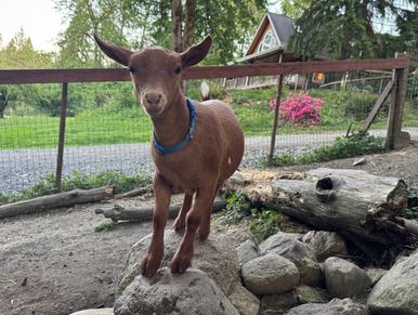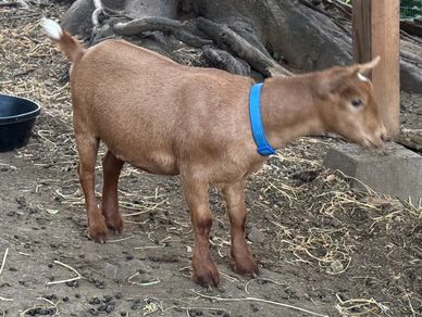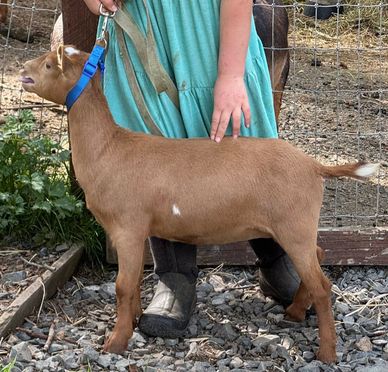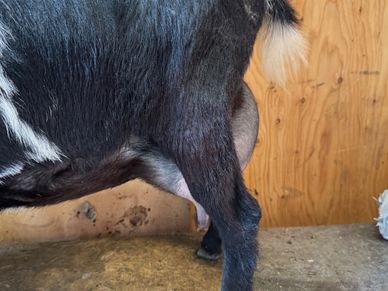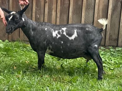 Patsy is a character, her personality is super sweet and spicy at the same time. She has nice tight shoulders, level top line and her teat placement is correct. Her dam, Long Acres Farms FSS Fern is an improvement of her dam, Stayawhile On Santa's Lap "ASH" in Udder capacity, smoothness of the fore udder, better medial and a little taller with a longer neck. Patsy's sire, Rainshadow Hank Why Do You Drink AKA "Snickers", we hope will help out with the rear udder height, barrel and dairy-ness. The 2026 breeding season will help us see this.